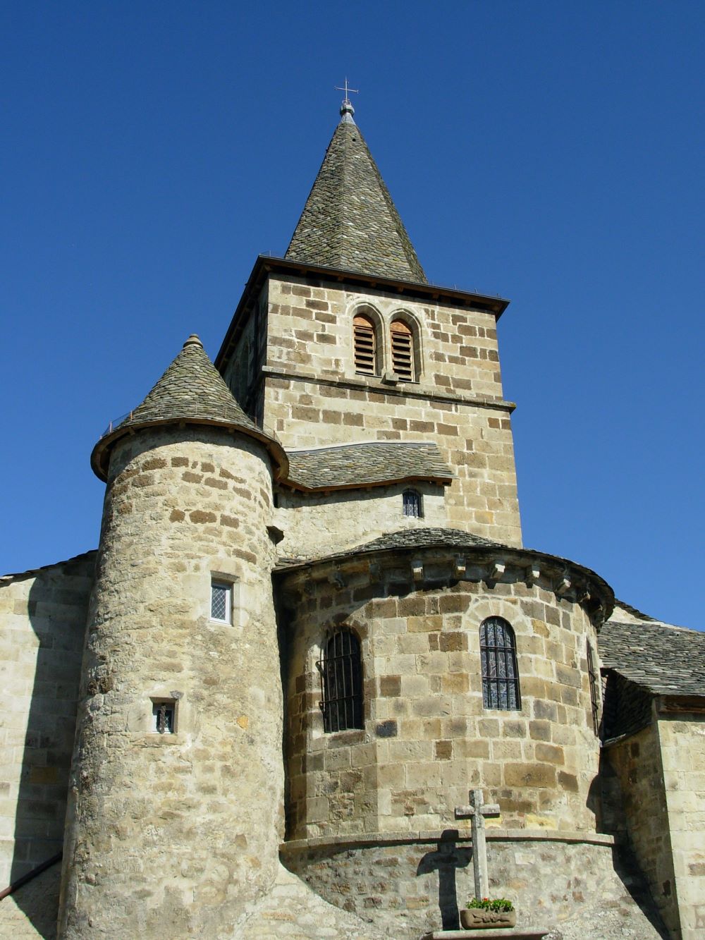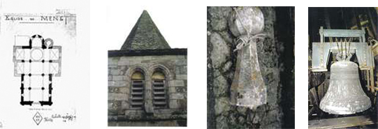 La chapelle nordsemble dater du XVème siècle et celle du nord-ouest probablement du XVIème. La tour lanterne a été surélevée par un clocher coiffé d’une flèche octogonale de charpente. Chaque face est ajourée de baies jumelées. Cet exhaussement est probablement du XVIIème siècle de même que le percement de l’oculus zénithal dans la coupole, ménagé afin de hisser la grosse cloche, datée de 1615. Au sud, une tourelle abritant un escalier en vis a été construite pour donner accès au clocher. Les chapelles sud, comme la sacristie au nord-est sont vraisemblablement du XIXème siècle. |