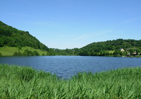 La profondeur maximale du plan d’eau serait de l’ordre de 6 mètres dans sa partie ouest, c'est-à-dire au pied du Puy de Menoire. Son bassin versant est très restreint. Il est limité à l’ouest par le Puy de Menoire, au sud par le village de Menet et au nord par le village du Liocamp. Son alimentation se fait par des sources qui apparaissent au sein des prairies situées sur le flanc Est du Puy de Menoire. L’exutoire est situé au Sud-Est du lac sous la forme d’un écoulement lent au travers d’une végétation dense d’hélophytes. Ces derniers jouent un rôle de filtre et les eaux qui arrivent dans la Sumène sont relativement fraîches (sachant que la température des eaux de surface du lac peuvent atteindre 29°C en été) claires (piégeage des matières en suspension) et épurées (fixation des éléments minéraux : azote et phosphore). |